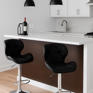 Kit com 2 Banquetas Slim Giratórias Estofadas Altas em PU Preto com Base Cromada e Regulagem de Altura – Design Moderno e Confortável