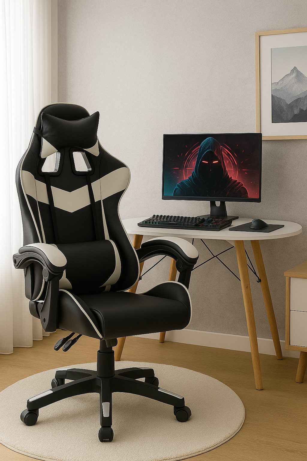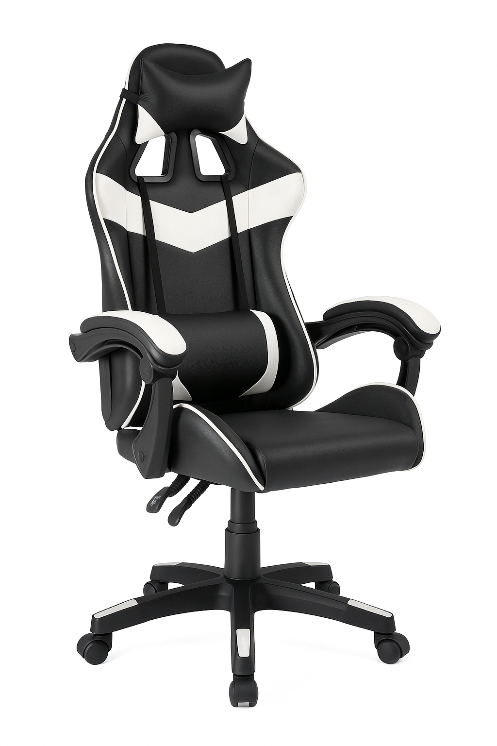- DESIGN ERGONÔMICO: Cadeira gamer com design esportivo em preto e branco, oferecendo suporte ergonômico completo para longas sessões de trabalho ou jogos