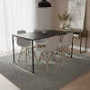 A mesa conta com tampo preto elegante e pés metálicos reforçados, garantindo resistência, durabilidade e um visual contemporâneo. As cadeiras trazem o design consagrado Eames, com assento anatômico em polipropileno e pés em madeira com estrutura metálica, proporcionando conforto e estilo em qualquer ocasião.