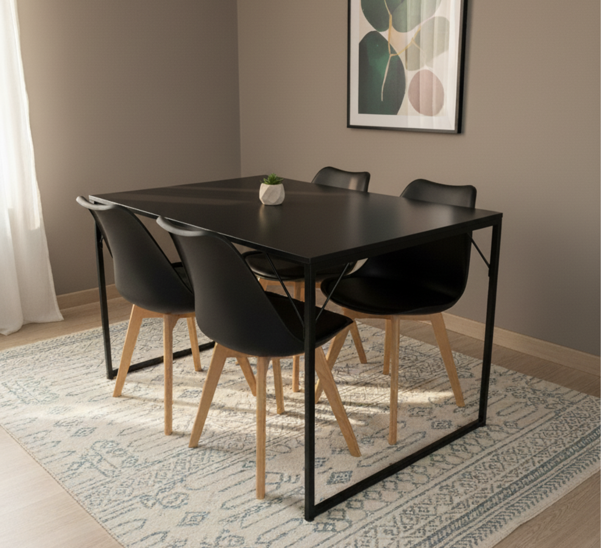 Mesa de Jantar Industrial 120cm com 4 Cadeiras Pretas – Elegância e Conforto em um Só Conjunto