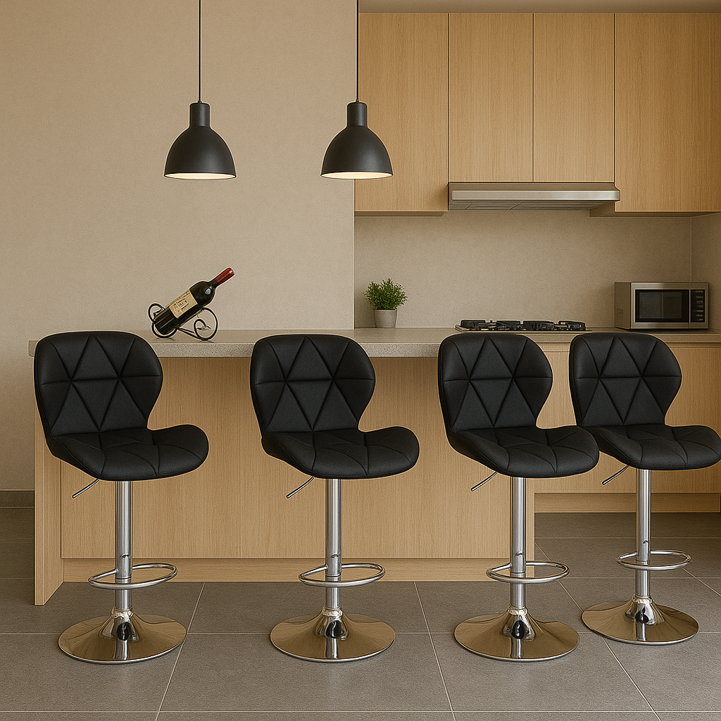 Kit com 4 banquetas – Perfeito para bancadas maiores, áreas gourmet e integração de ambientes.