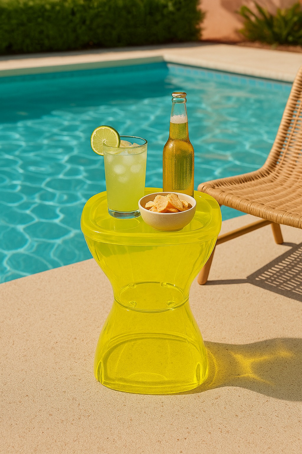 Produzida em policarbonato de alta durabilidade e acabamento translúcido, suporta uso diário em áreas internas e externas, como varanda, jardim, piscina ou sala de estar. É leve, prática, fácil de limpar e transportar.